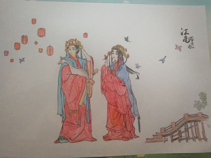 没有电脑,打印出来,靠12色彩铅艰难的涂好了,除了凤冠霞帔还能怎么办呢