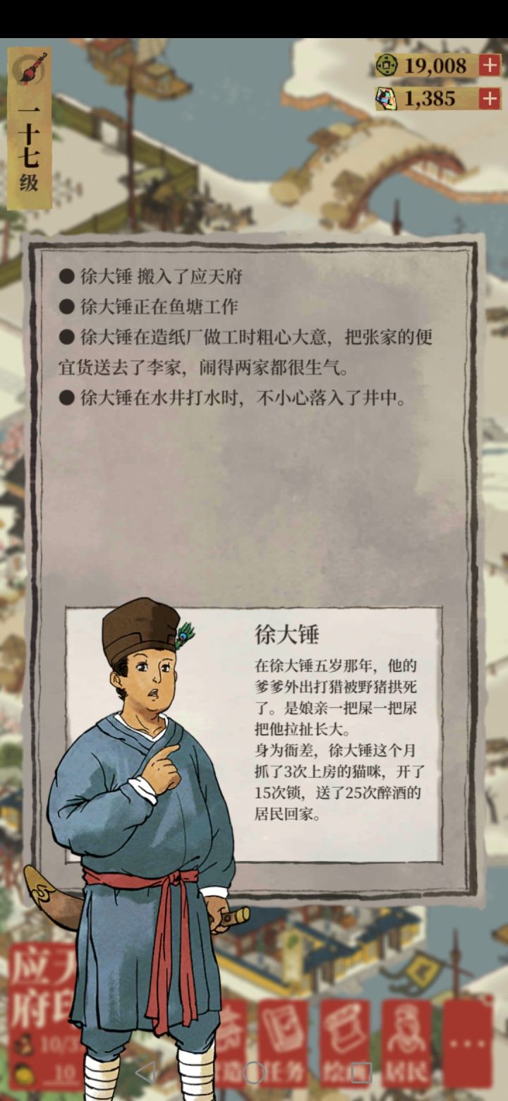大家好,我是徐大锤。今天打水我掉井里了,目前还没出来呢。知府大人派我去打水,我刚搬来应天府,入职不久,也不知道水井在哪,就问了下同僚,他们说你出府门右拐就能看到了。我摸摸头,拐出府门一看,嚯!好家伙,一二三四六口井,全在餐馆这一块儿,可不愁用水了。我寻思着也不知道知府大人怎么规划的,虽然井口修的很高,但是还是有些危险,我得向知府大人提提意见,但是目前最要紧的还是打水。我就近一口井准备扔水桶下井,