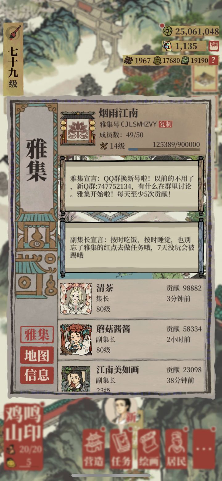 14级雅集长期招人爱聊天爱布置爱桃花村组队的玩家,一起共创未来,可以先加群随时入雅集