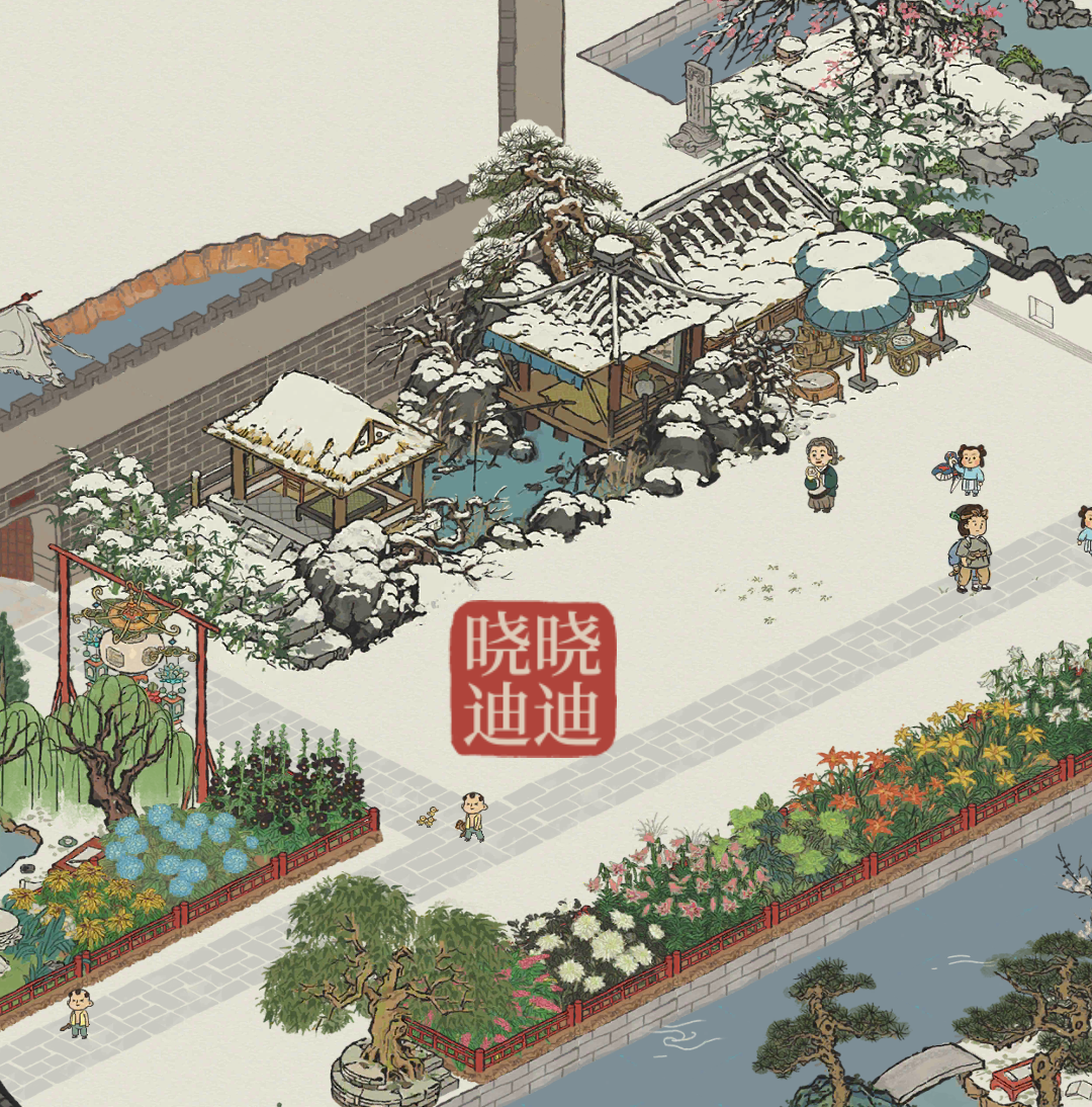 #冬雪江南#游戏账号:mfyujh49ns5我自己挺喜欢这一块布置的,在松江府