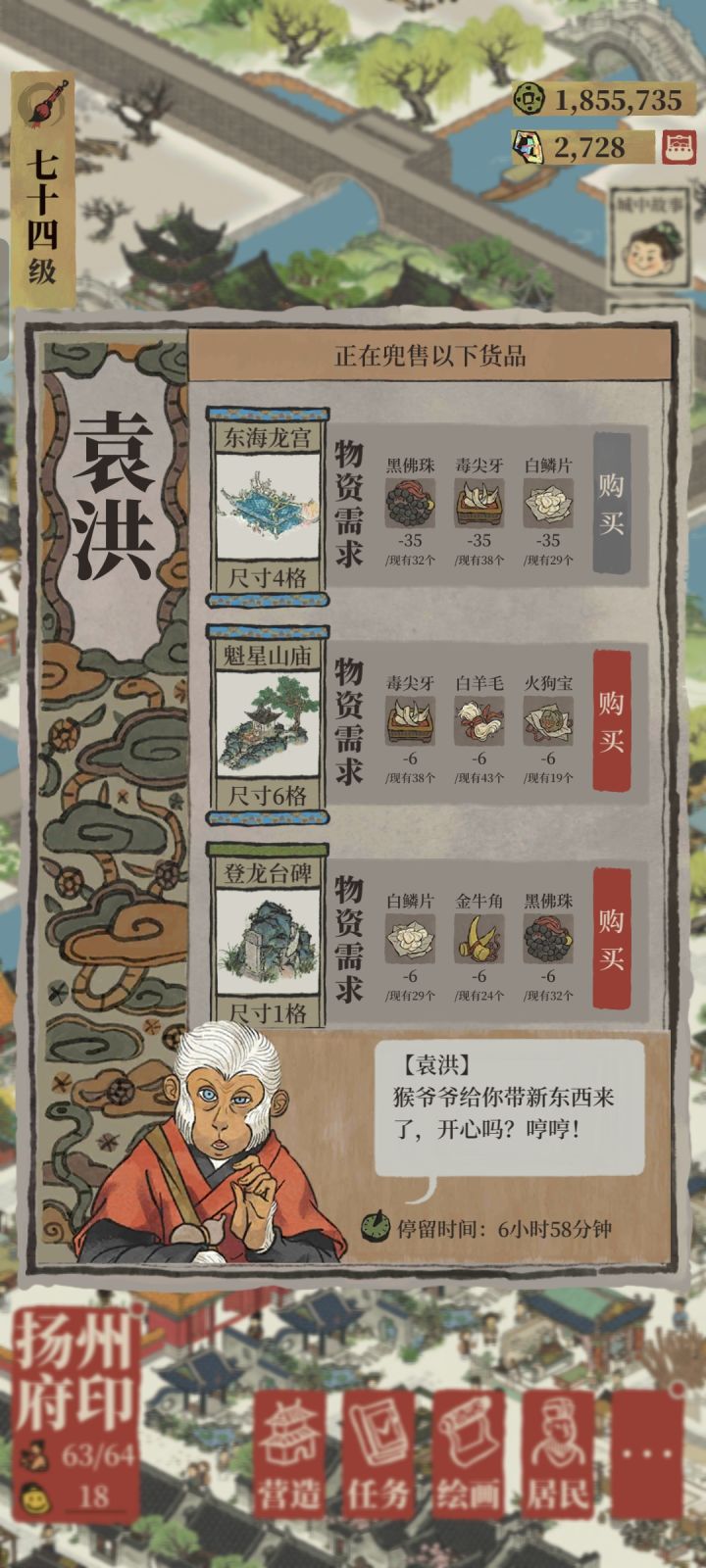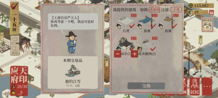 可恶,严大人来和我做交易,但是仓库里所有东西加起来都换不了一件,严大人你卖东西好贵呀!!!(到底是太穷)#江南百景图#江南百景图资源
