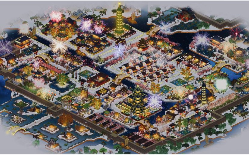 应天府的夜晚有多美? 应天人过新年会有多热闹? 经年一画百景图,你我皆是图中人。 大桥上并店家灯火,大千万也。 伎乐之声,遥闻之..... 入百景图已数月,如今应天府终于建设完工。 欢迎各位来我的府上游玩🧨