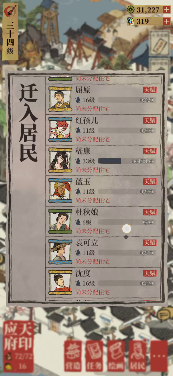 我艹!!是不是出bug了!!!为什么未分配的居民找不到了😱😱😱