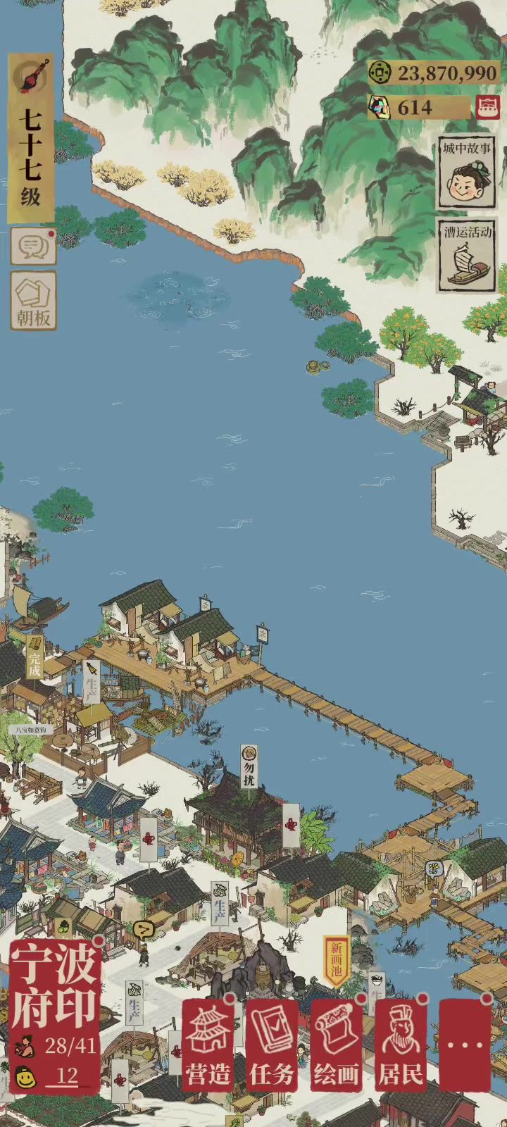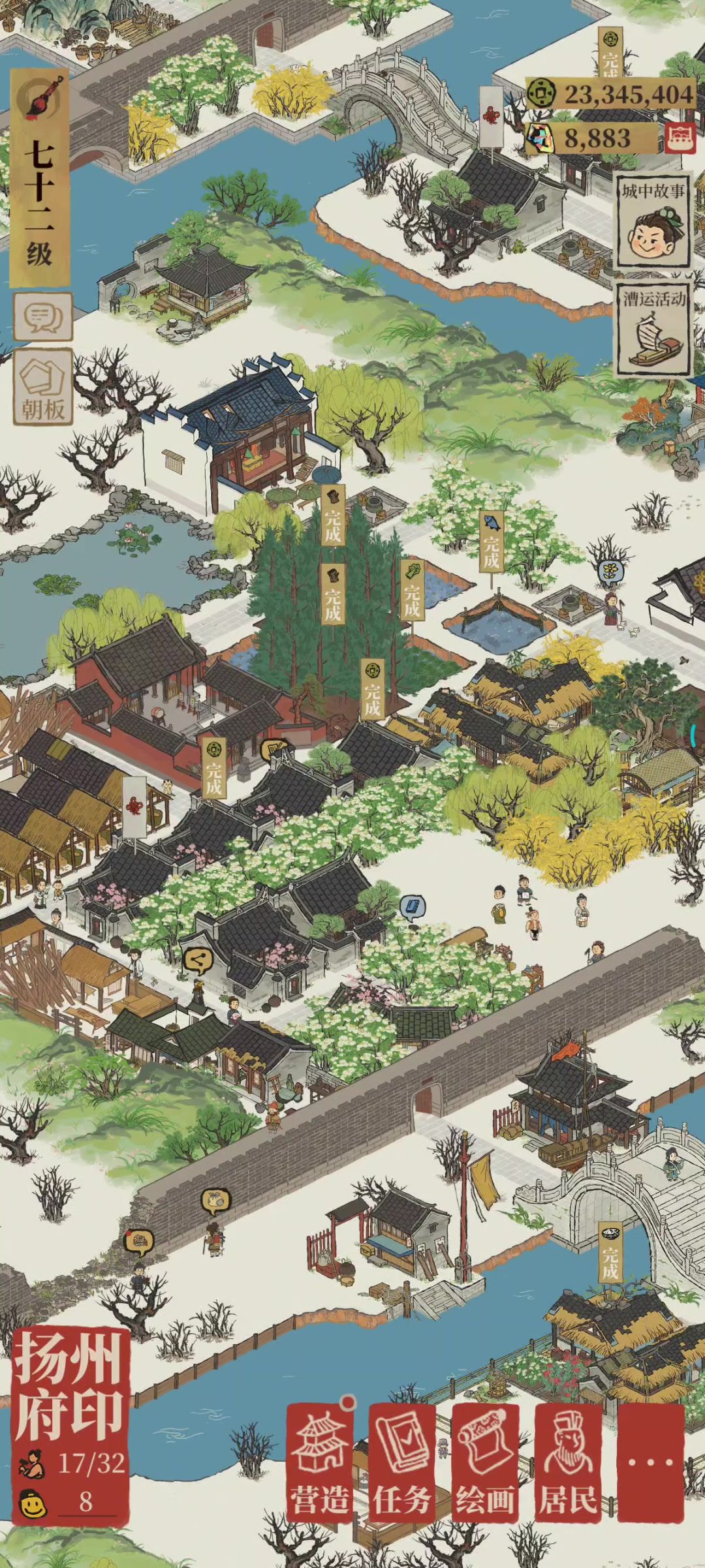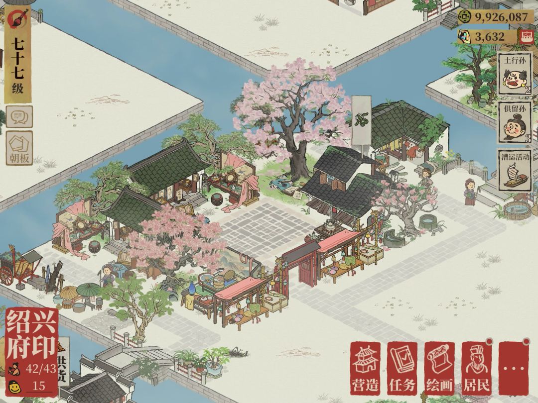 自我感觉没有亮点也没有槽点,整整齐齐,布局也算合理吧,零氪金。能力范围内算是认真建设了,好多好看的建筑放到一个县城去了,本来打算仿大观园,最后也没仿出来,建筑也挪动不了了。