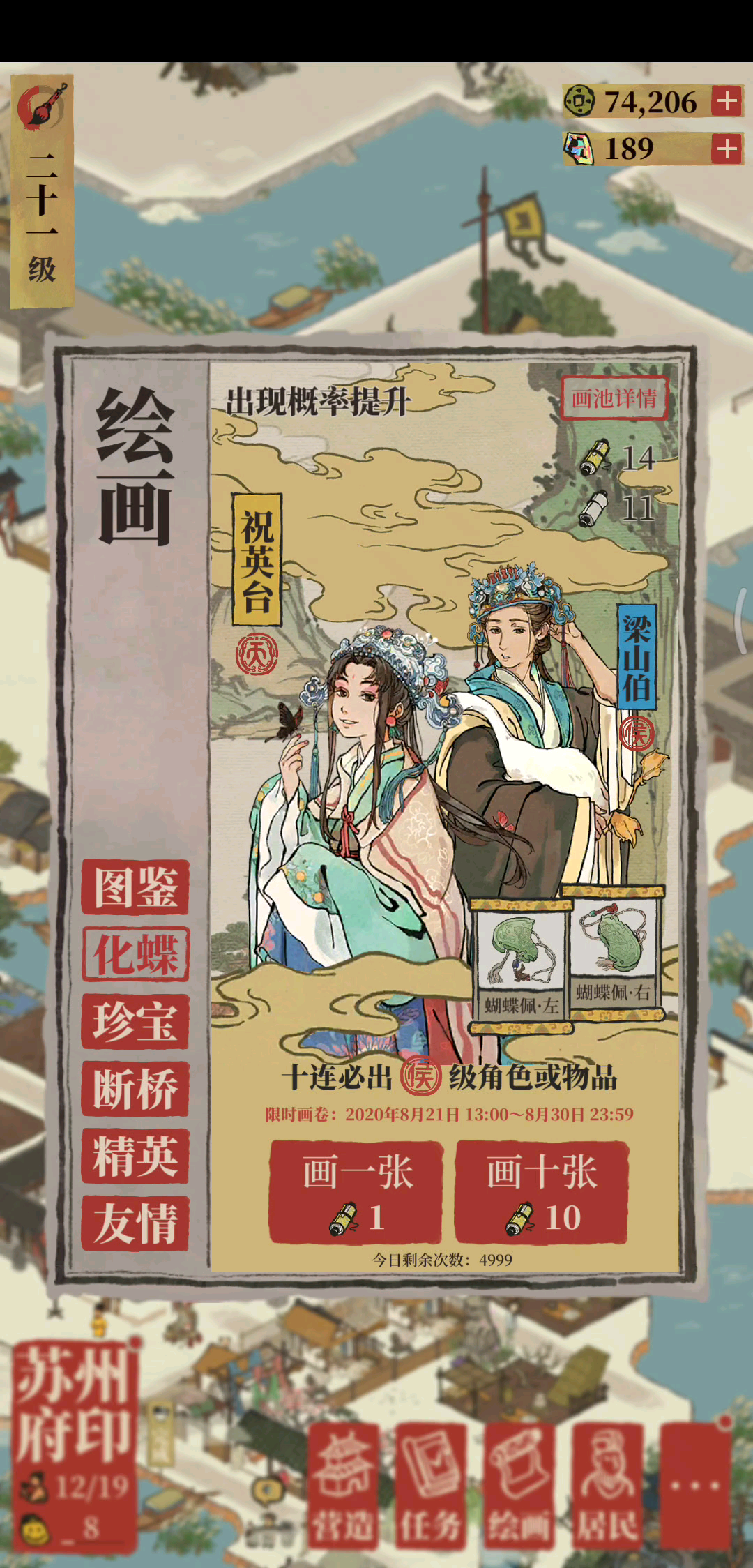 画蝴蝶画蝴蝶🦋 在化蝶卡池画蝴蝶抽出了谈允贤,之前就抽到过梁祝啦,重复了一个天级,感觉这个十连还是蛮欧的🤩 说起来这个概率还是挺迷的吼,抽完才发现是化蝶池。