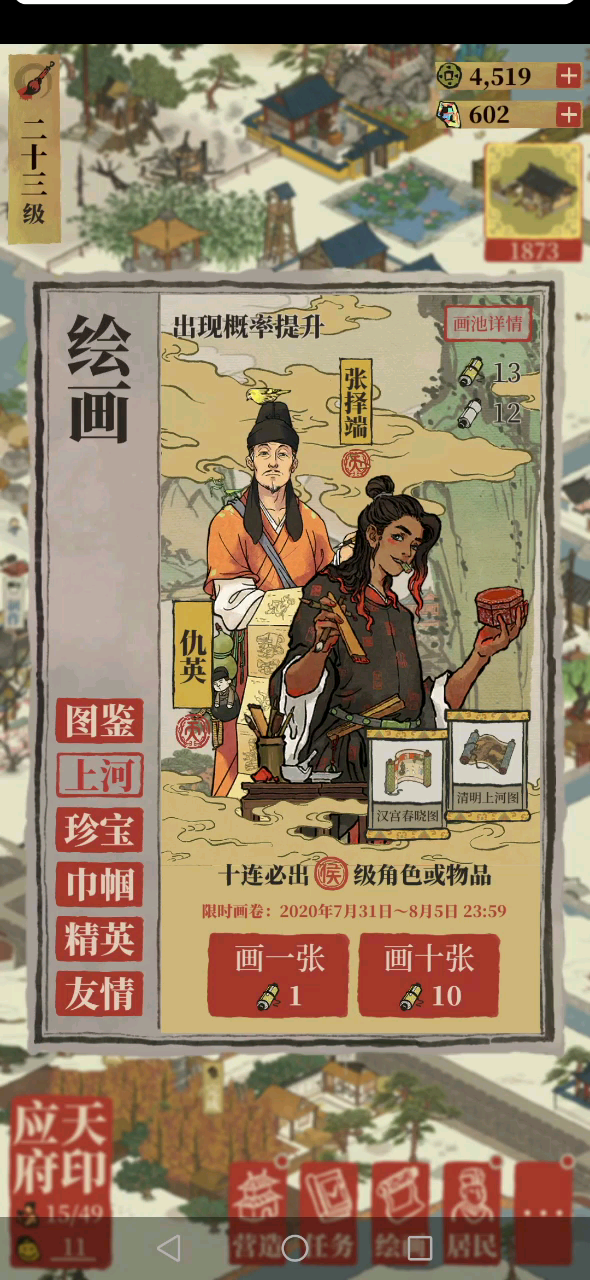 学习与生活的压力日渐沉重,但在江南百景图,我就是一个懒散的富家翁。吴黎姑娘今儿个第一个来啊?呦,这位是?沈...沈公子?来人,为咱们的画仙准备一间天字号厢房!咦,昭君公主又来啦,来两杯酒暖暖身子?再来一间天字号!好了,其余各卿今天不见也罢!