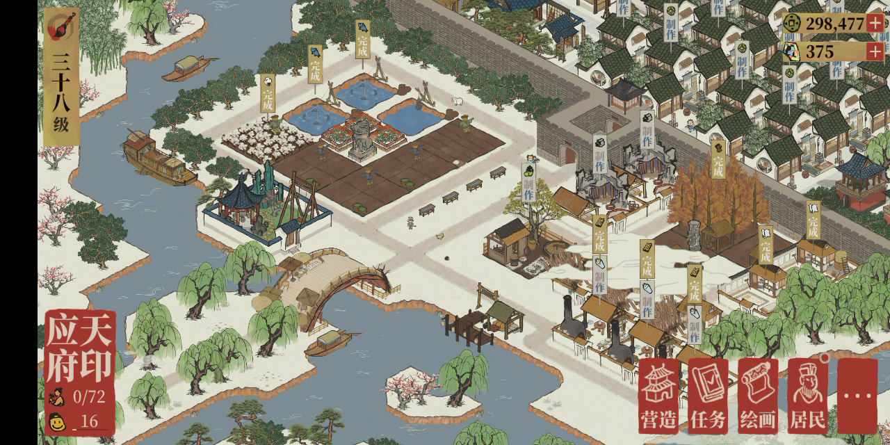 我才30级,后面还有几个建筑没解锁, 后期,中间5个画室换后旗的商铺,然后琉璃塔旁边的空地放其他建筑。
