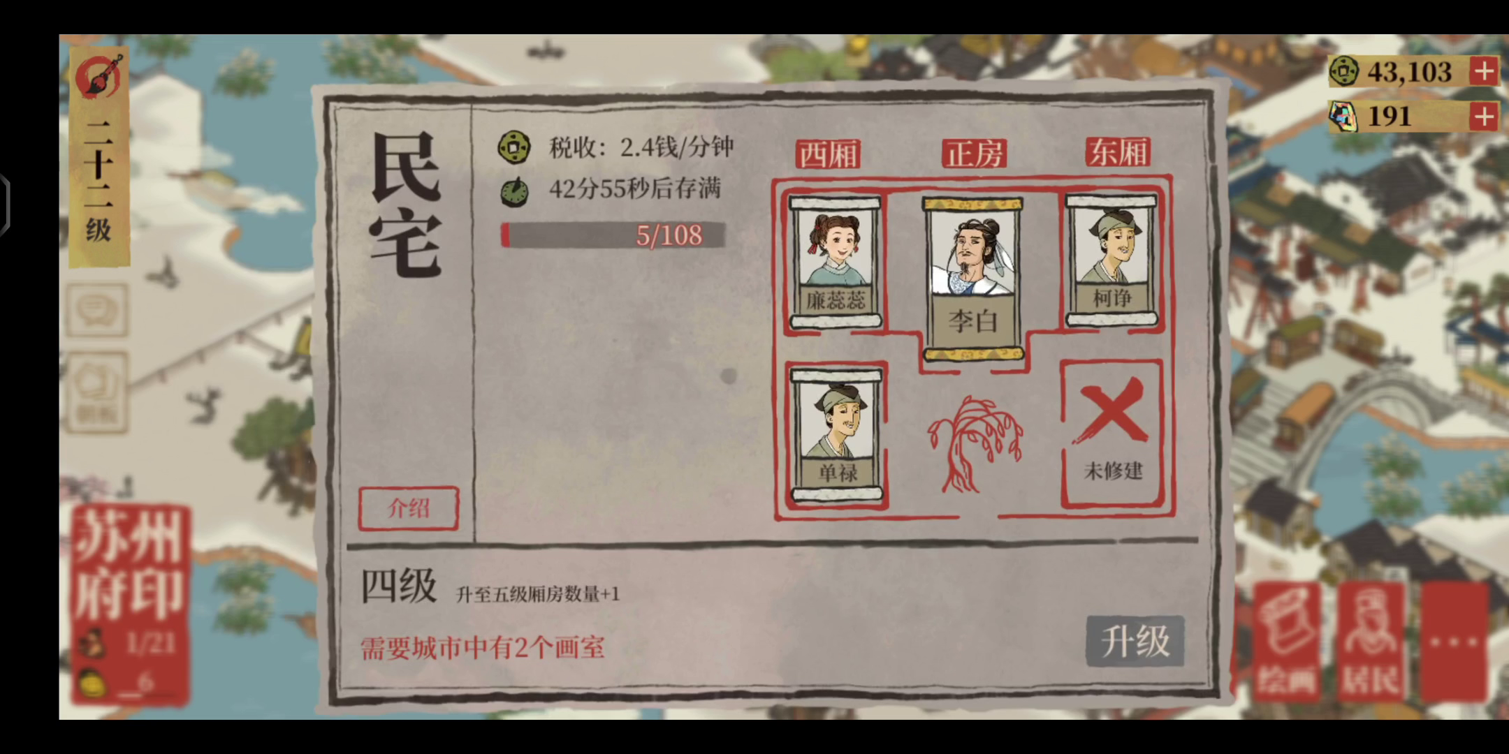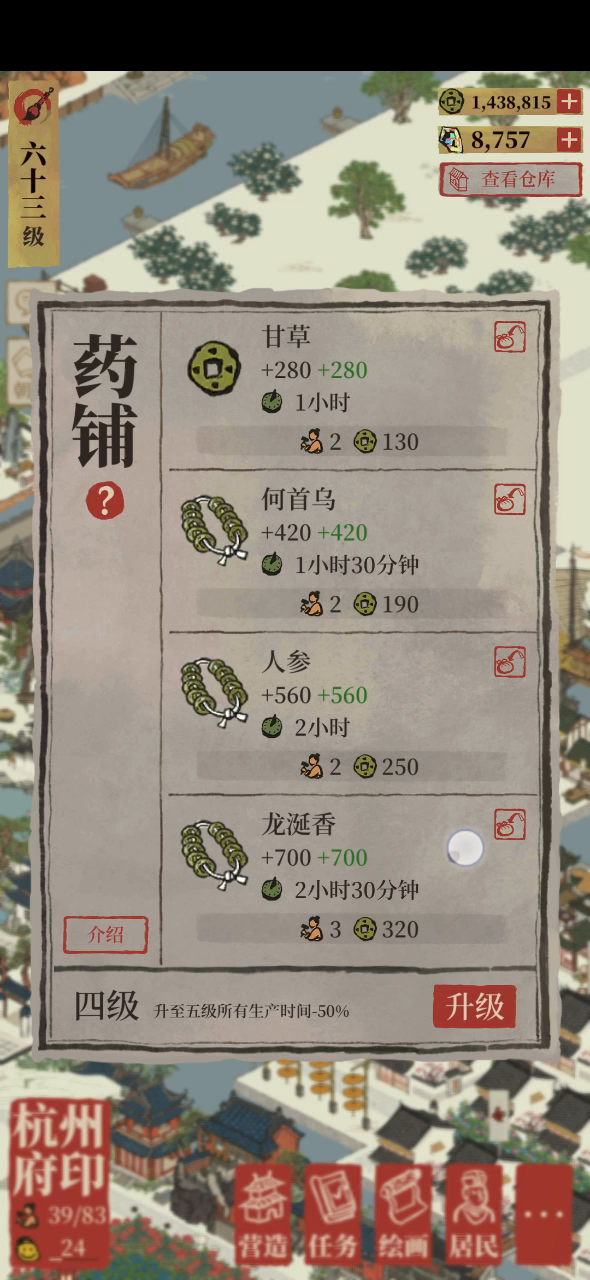 玩了两年多的江南百景图,非常喜欢这个游戏的画风和玩法。 已经是65级的知府大人啦!