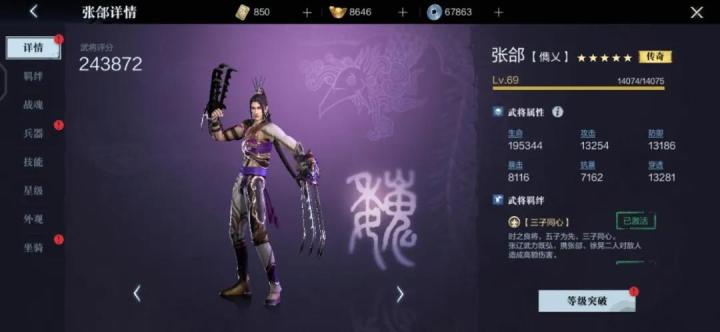 小霸王们好,本期武将情报站,霸哥为大家带来的是三国时期魏国名将——张郃。他早年镇压黄巾起义、击败公孙瓒有功,后在参加官渡之战时投奔曹操,屡建战功,受封五子良将。身为五子良将之一的他以“善阵巧变”见称,是一位懂得战术变化,善于安营布阵,根据地形布置战略的名将,从诸葛亮起的蜀国大将都非常忌惮他。在街亭之战,就是他的妙计大破蜀国将领马谡,致使蜀军军心涣散,随后被击溃。而在《真・三国无双 霸》手游中他