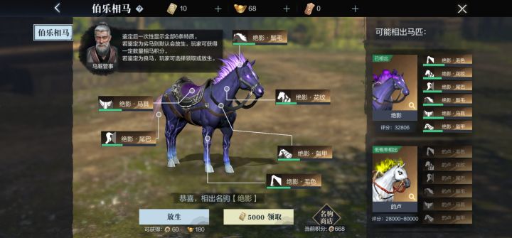 抽了个幻影,没钱买,那这相马有什么用啊,俩紫的出一蓝,我要的卢你出紫都没关系,咋滴血脉不纯俩黑人生个白人出来呗