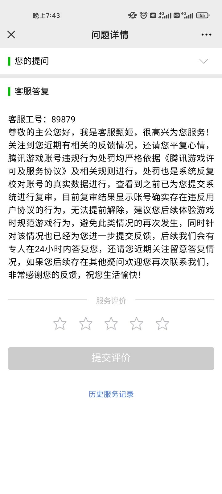 服务太差了!!我用官方推荐的游戏手柄飞智手柄打游戏,为什么封我号,回复也给具体理由!真扯淡!