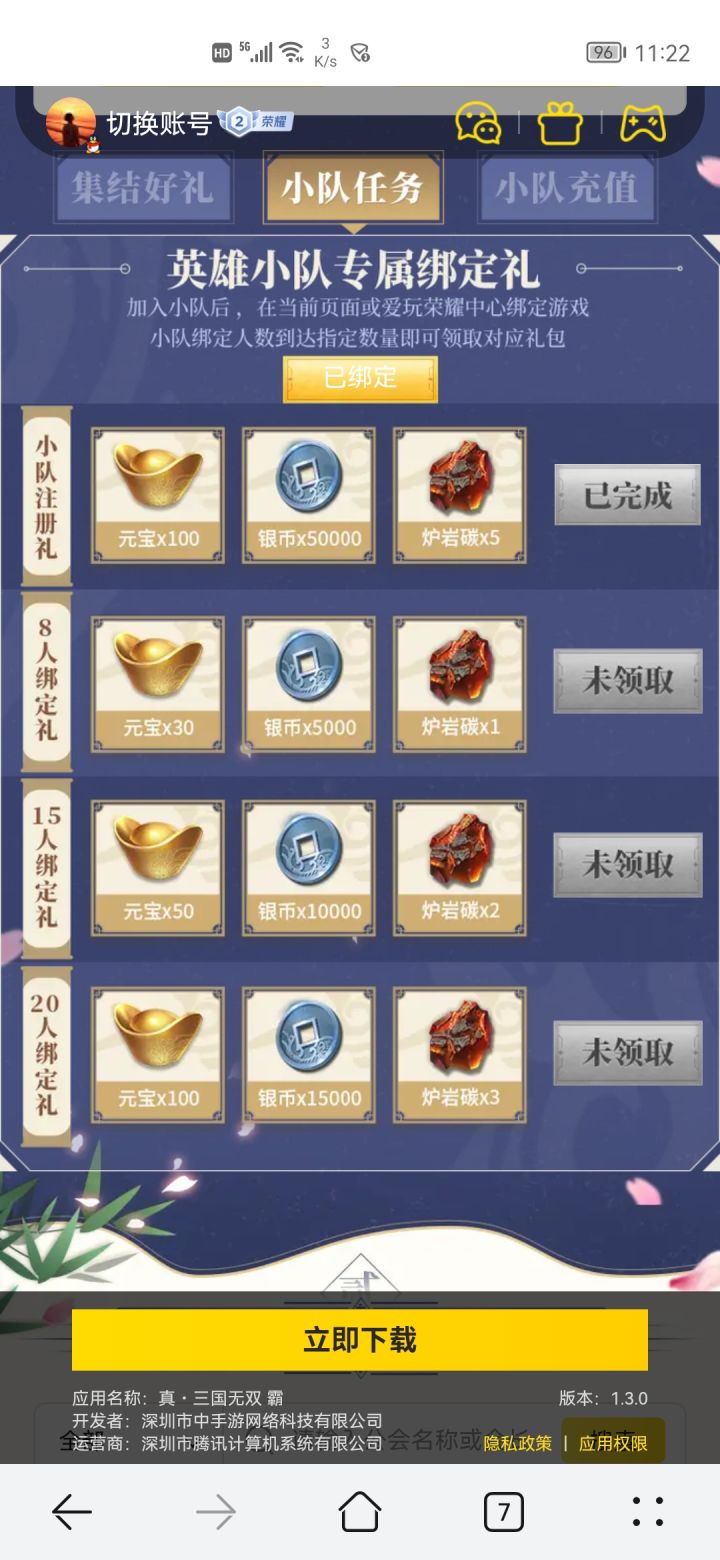 集结绑定都有奖励,点击链接,最下方队伍搜“帝皇”加入,快来一起组队吧~