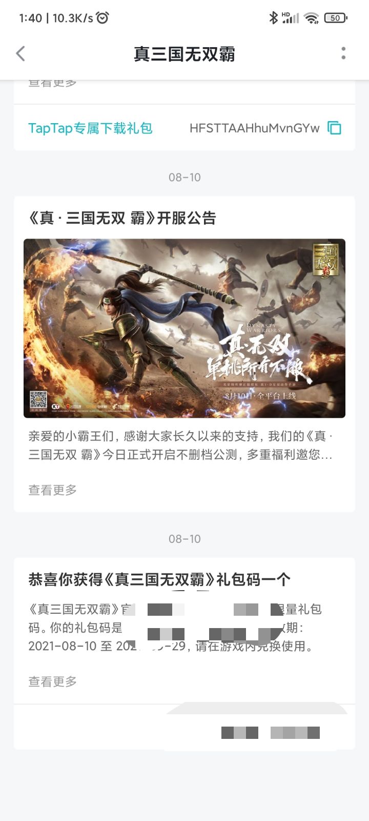 第一步:首先在 TapTap 下载《真三国无双 霸》,点击详情页,会看到「礼包与激活码」选项。点击后会看到对应礼包码,如果你之前预约过这款游戏,还会在消息通知里收到 TapTap 预约里程碑礼包,总计三个兑换码。第二步:进入游戏做完新手教程后,依次点击右下角小图标→设置(齿轮状)→礼包兑换。大功告成!