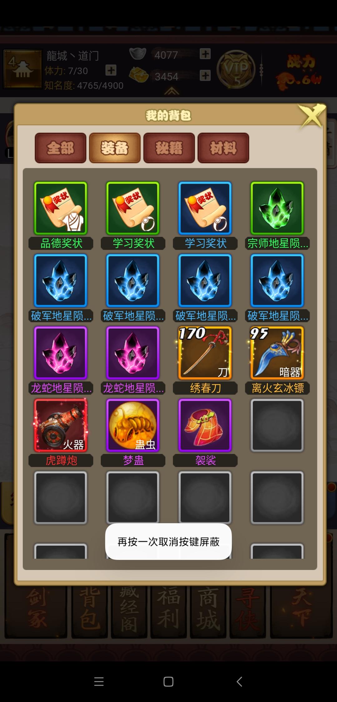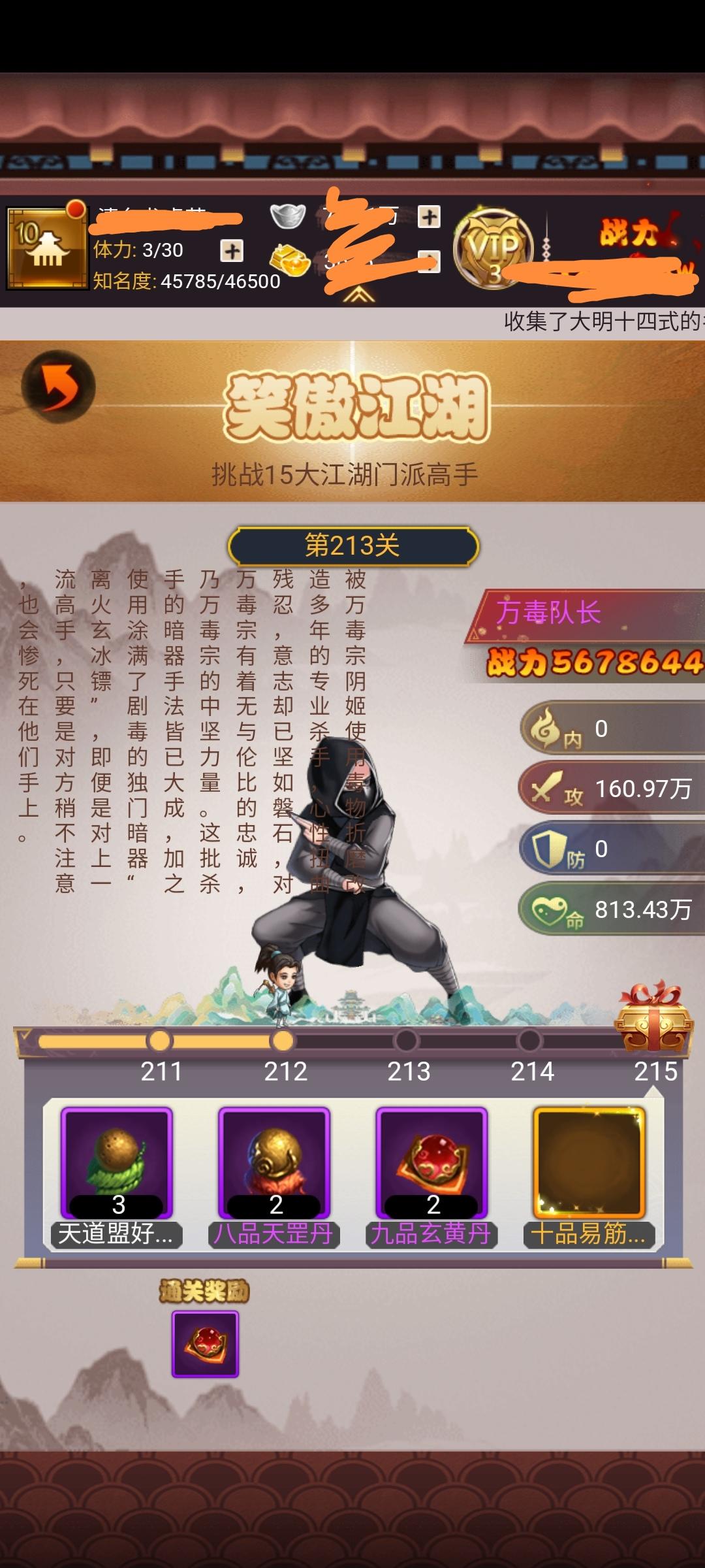我不知道是不是我太菜了,还强化的都强化了,大事件也打了不少但江湖的好多事件还是打不过,动不动就150w200w战力的出来秒杀我,我打人家全是挠痒痒,一个江湖帮派打不过地痞流氓打不过来踢馆的还活着干啥,希望官方可以下调一下这种事件的难度。6级帮派后上了10人阵但其他不常用的弟子升级太慢了。什么?你说师兄指导有经验加成?行!100级的唐无解带一个112级的付昕打一个300w血的庄子打一天都升不了几级