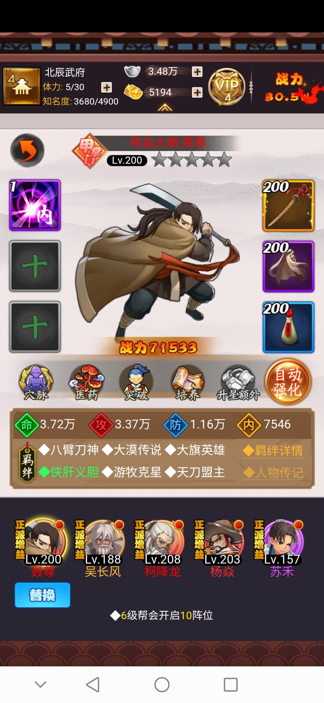 我的第一个甲级侠客是聂尊,接着一波十连抽到了柯降龙,大部分资源还是给了柯降龙