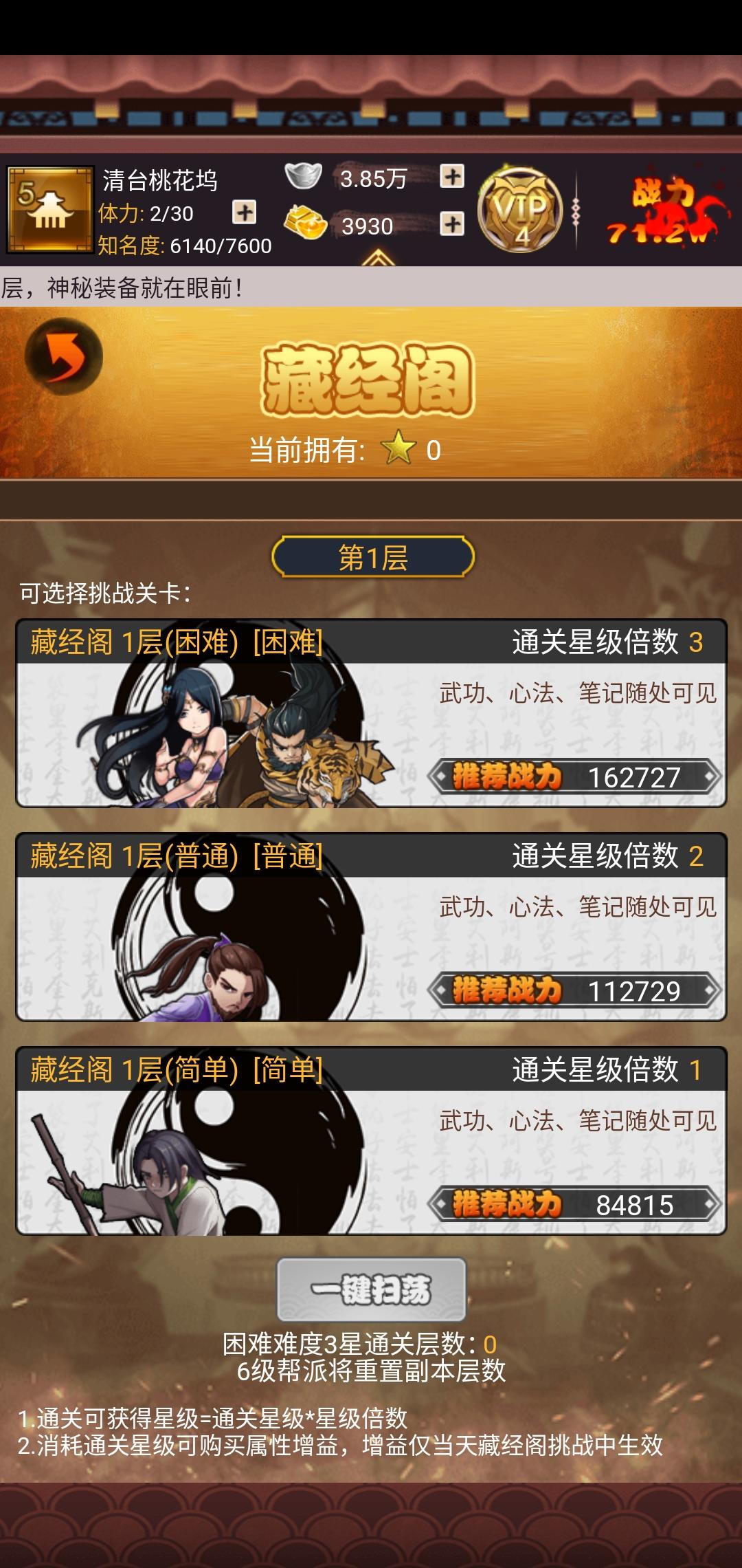 这个藏经阁怎么不可以扫荡啊?也就是说昨天打的没用,必须当天打当天扫荡?那你们也好歹搞个跳过啊!!!不然多累,一直看着他打,竞技场没有跳过就算了,这个也没有??优秀