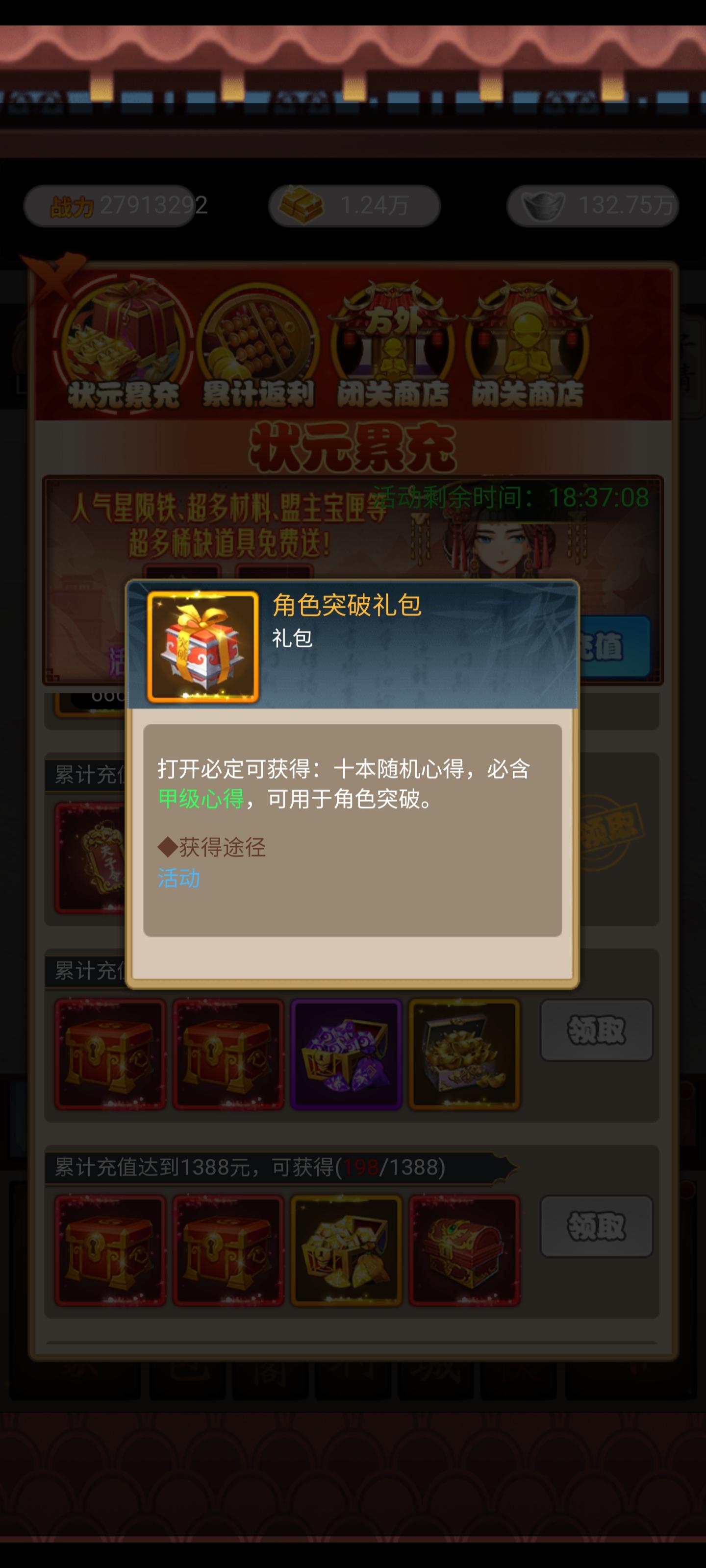 这个游戏整体来说还是不错的,休闲时间可以玩玩,剧情虽说有点老套,不过挺喜欢的,修罗宗宗主很飒!😏缺点就是金条获取渠道太少,人物上阵后,只能更换不能下阵,人物图鉴只能看自己有的。😕
