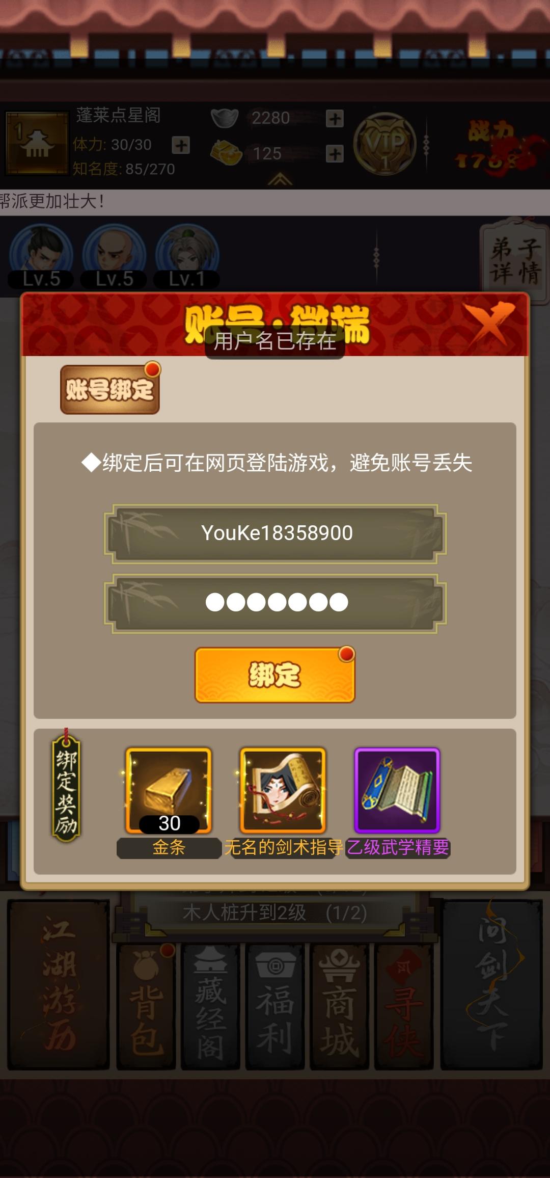 为什么绑定账号都绑不了,说用户名已存在,而且绑定就只能退出游戏重新进,点都点不掉
