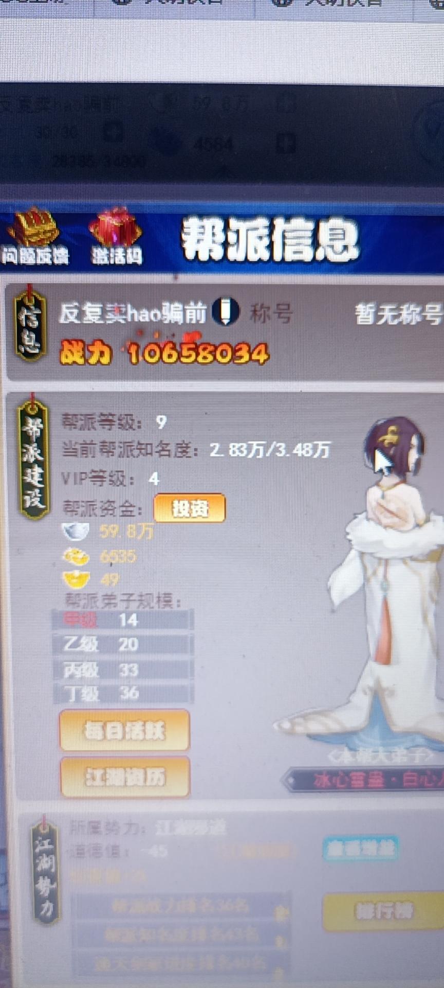 图鉴全了,一统不了。只怪当初遣散了个丁,刚开始玩有遣散功能,就试着点了个丁。现在就差那个丁才能一统。回复官方,官方回复需要拥有全部弟子跟图鉴没关系。咱们这游戏不是卡牌类型游戏吗?怎么跟图鉴没有关系。为什么说明上没有写不要遣散弟子,需要所有侠客才能一统!搞不懂现在为什么又把遣散功能和谐掉了。这个锅说心里话,我不太想背!这应该不属于玩家的问题,挖了个坑,让我跳!