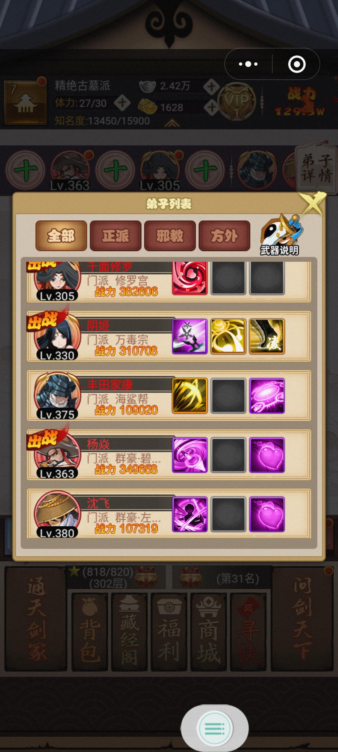 求大神们指教一下,该上哪几个?怎样布阵?邪派用不用继续等阎王还是抽正派或者开宝匣?(当初打算玩四人后来为了大事件的离火玄冰镖多上了一个)非常感激不尽。