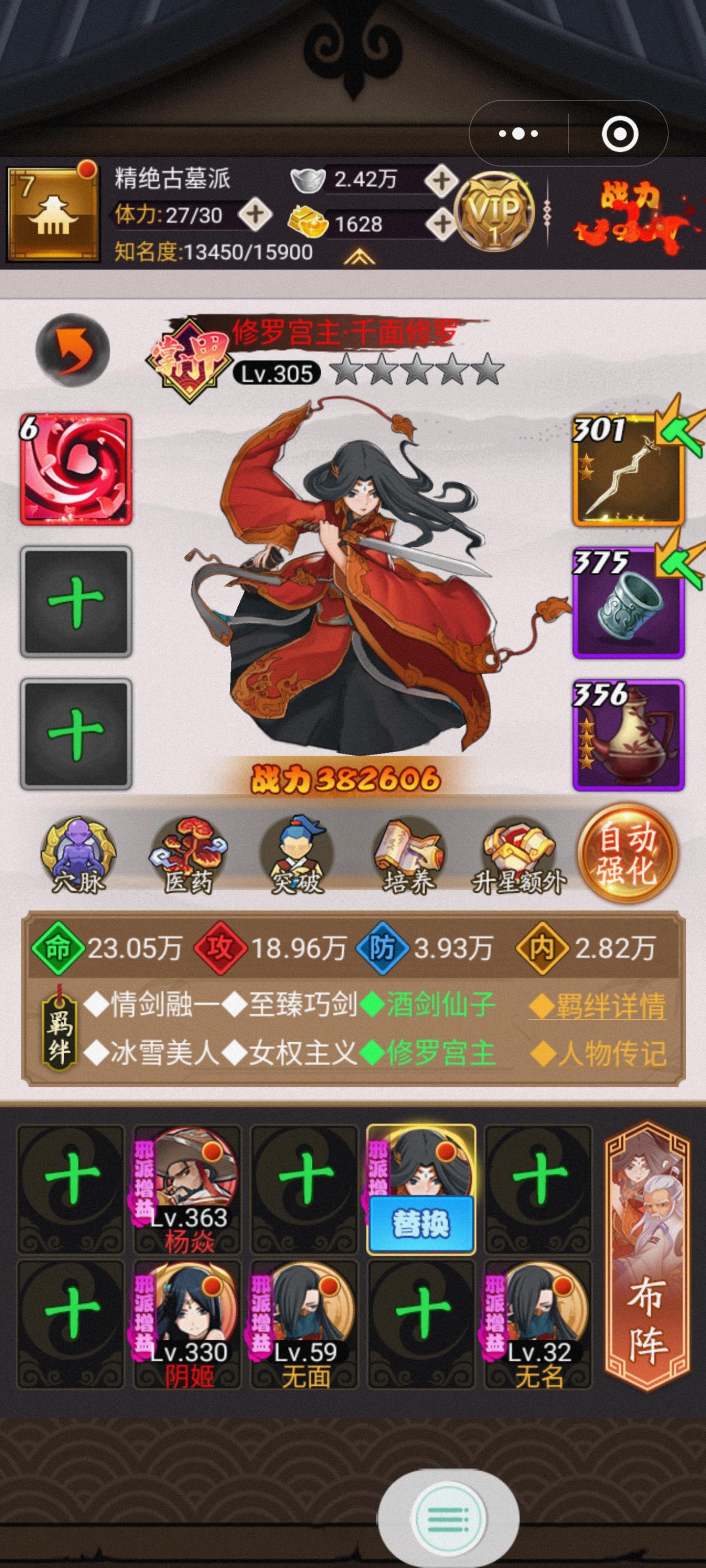 今天刚玩,抽到了修罗阎王黑白无常+杨焱,还有必要继续抽卡换阵容吗?如果不换,这几个侠客怎么摆位置,目前帮会二级只能最多五人阵