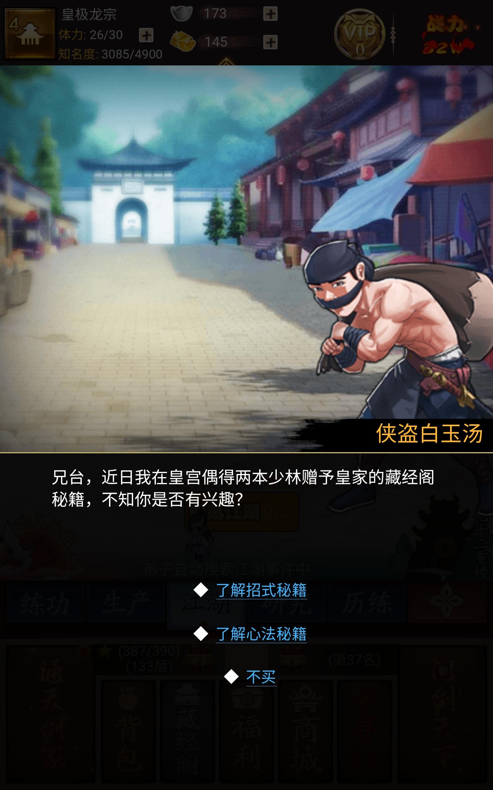 爬塔到450层后就可以开启闭关洞府,闭关洞府开启后就可以闭关修炼了。闭关需要使用专门的道具来开启闭关模式,道具可以通过每日宝箱和精彩活动获得。闭关一共要突破十层,每突破一层属性都会提升,每一层都需要消耗材料进行闭关,材料在闭关宝箱和镇蜀门都有产出。爬塔会消耗经验,练功界面中的练级木桩是角色获取经验的主要途径,可以通过指挥弟子练功的方式,通过不断击毁木桩获取经验值。木桩的等级会决定其血量、防御、角
