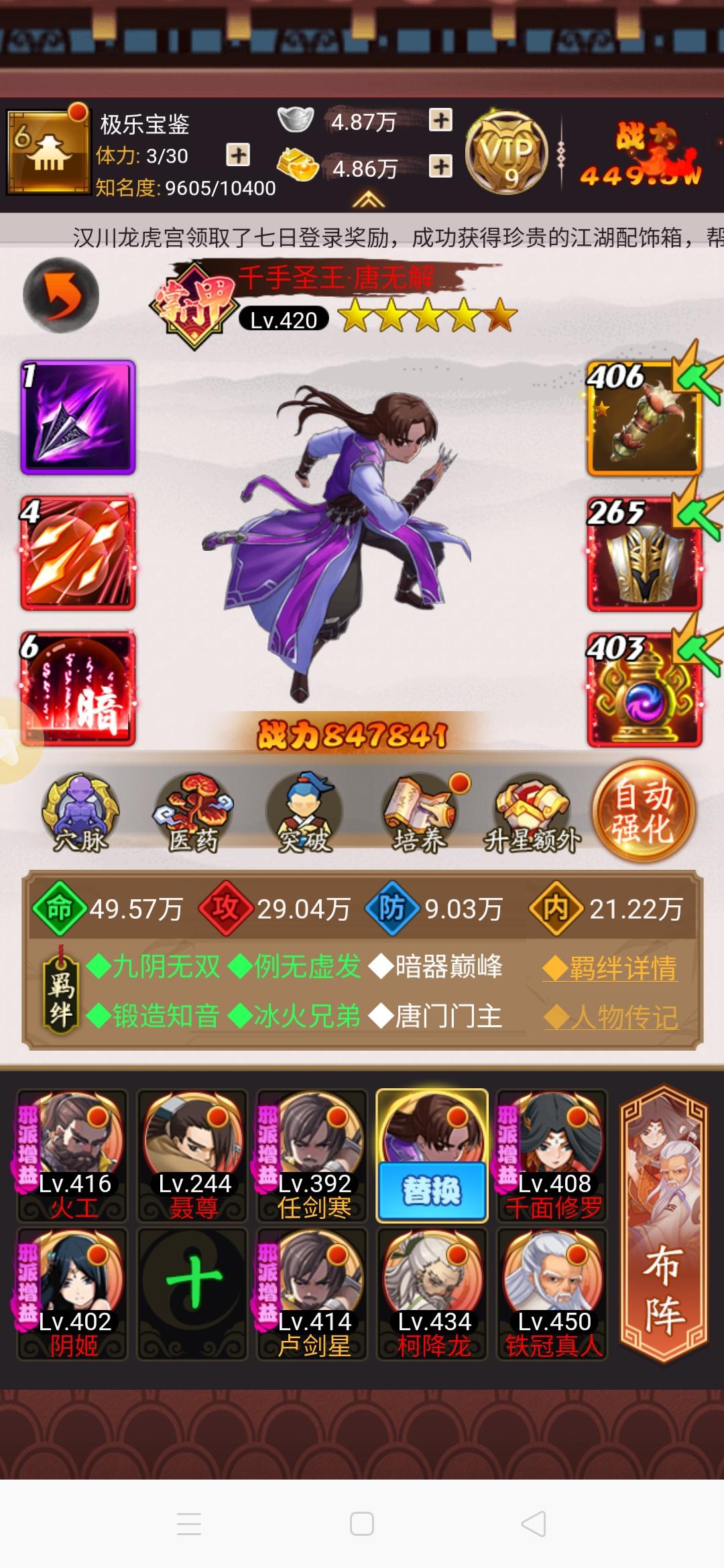 大明侠客令是一款卡牌冒险类游戏,要开七人阵就需要帮派等级大于六级才可以由五人阵升为七人阵,这时玩家尽量攒集七名及以上甲级弟子,推荐将剑系角色、高攻角色放在先手位上,争取出手让对手减员,从而加大获胜几率。在升为七人阵之前还有五人阵:帮派等级小于六级为五人阵,这时正派与邪派的搭配都是能上5个甲级弟子尽量上5个甲级弟子,没有收集全阵营五甲的情况下,推荐用3个棍角色过度,棍系角色自带普攻横扫,自身也比较