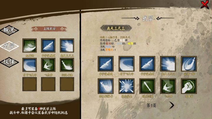 这里面最好用的几个技能我个人认为是血刀诀(攻击恢复60%造成伤害的血),移花接木(附魔一张防御牌使之具有同等的攻击牌效果),平沙落雁式(消耗一回合内所有策略点恢复内力和体力)。血刀诀让我有了和敌人拼刀子的底气(一百点攻击秒不了我,同时在理想程度上让我避免了全抽攻的尴尬,因为吸血的血量超过自身上限在一局内可以保存下来,所以只要我有五百点攻击,那个绝杀boss哪怕我全抽攻也秒不了我。),移花接木让我避