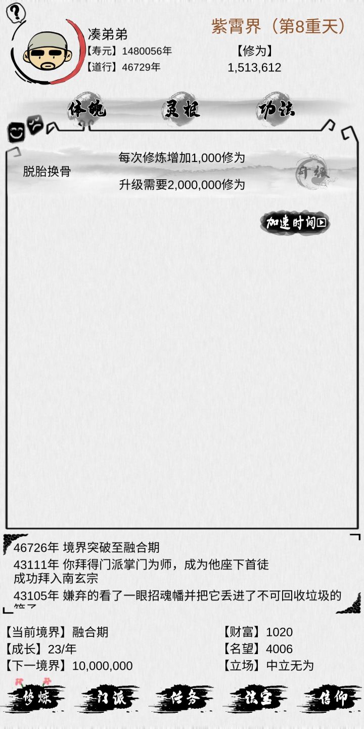 玩了几天 刚开始的时候一个小时左右刷愿望 都快吐了 啥也没有 最后出来一年十点寿命就玩了 下去 首先 每年应该是刷十次愿望就可以出十分之一修为 刷出来每年增加寿命的可以 增加 传递下一个境界 我是 我要的时候法宝 门派什么都是随缘 当然 我也没怎么弄懂 个人理解 我就是刷愿望 得加寿命 然后 刷修为 没多长时间就进去下一个境界 然后继续