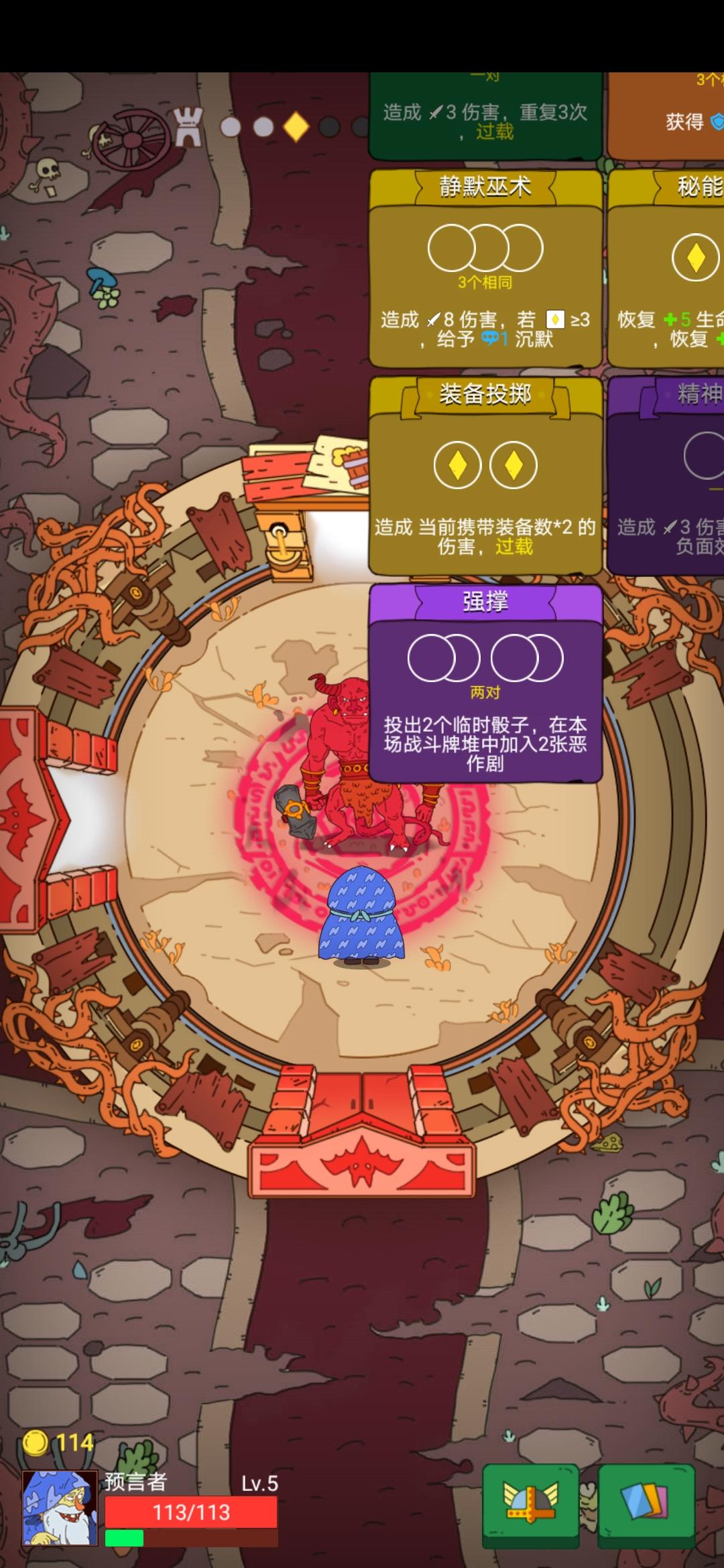一个小bug预言家 升级卡牌的时候出现的退出重进依旧如此结果只能离开房间后来通关结算的时候出现了图三的情况只能强退 还好结算没问题