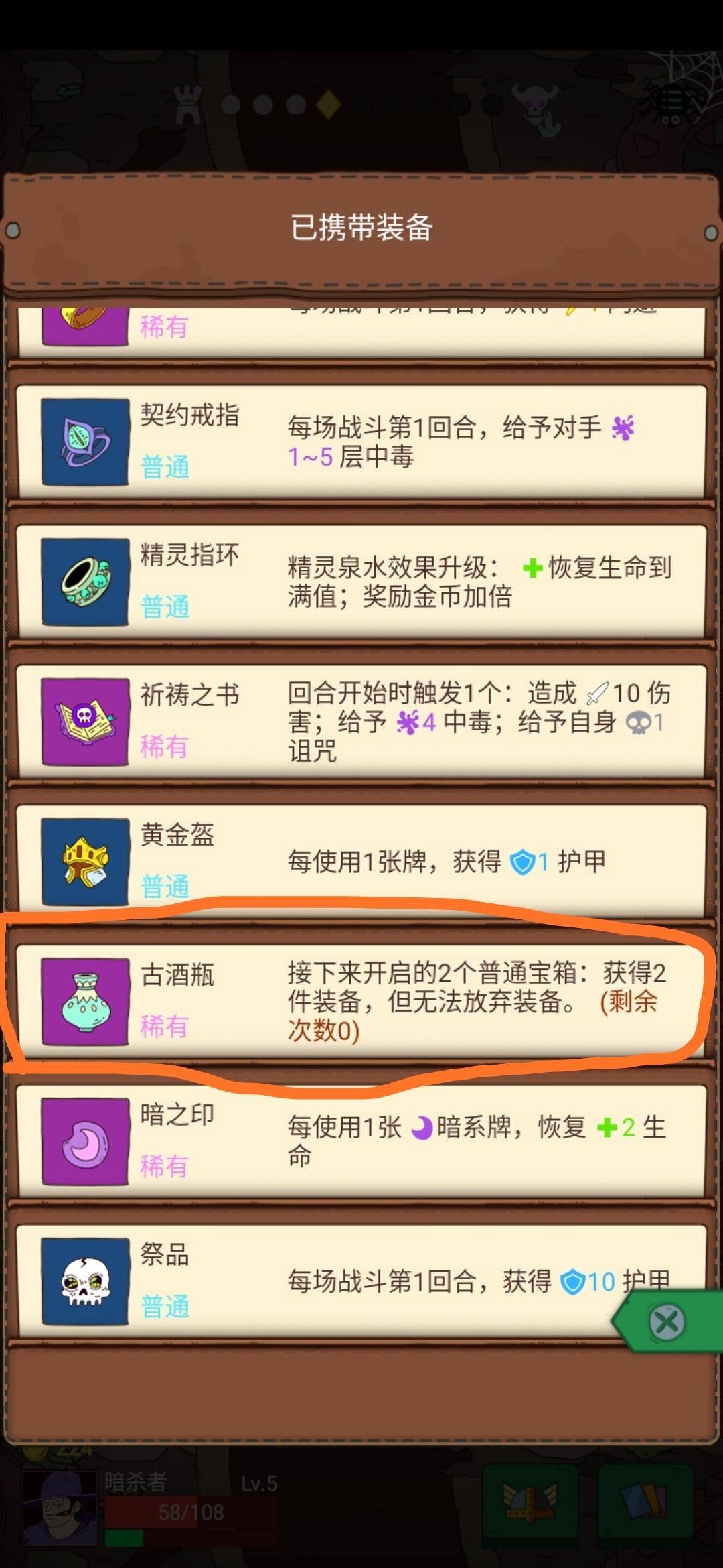 古酒瓶这个装备是不是有BUG?装备描述是“接下来的两个普通宝箱获得两个装备,但无法放弃”,但实际开了两个宝箱后,一件装备都没得到啊。。。是我理解有问题?