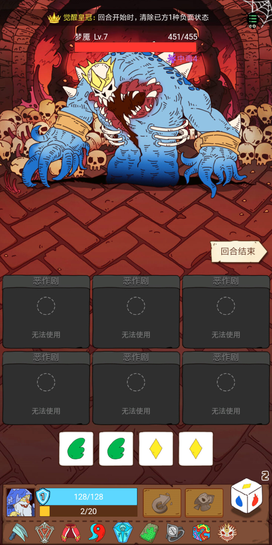 怪物死于回合开始时的技能,比如战意或者装备,会发生游戏卡死的BUG