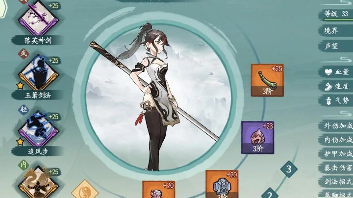 1.功法搭配核心必备:嵩山剑法作为仅有的两本暴击功法(且唯一的紫色功法),嵩山剑法因其好抽的特点容易升星;招式带三个加暴击的红卡——开门见山*2+千古人龙*和天赋点出来的两张卡万古千山+叠翠浮青;ps.:如果没有叠翠浮青就带一张加易伤的万古千山(推荐还是点出来,很好用)嵩山更多的是作为提供暴击的工具人,与无锋搭配基本可以保持全程刀刀暴击,大成提供的护甲也极大增加了防护能力(一回合上千护甲