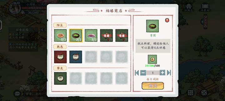 每个地图的店小二处可以买到吃食喂给小师妹➕元宝和升级功法的经验凉亭答案:满袖春风 艳如桃李 三杯两盏