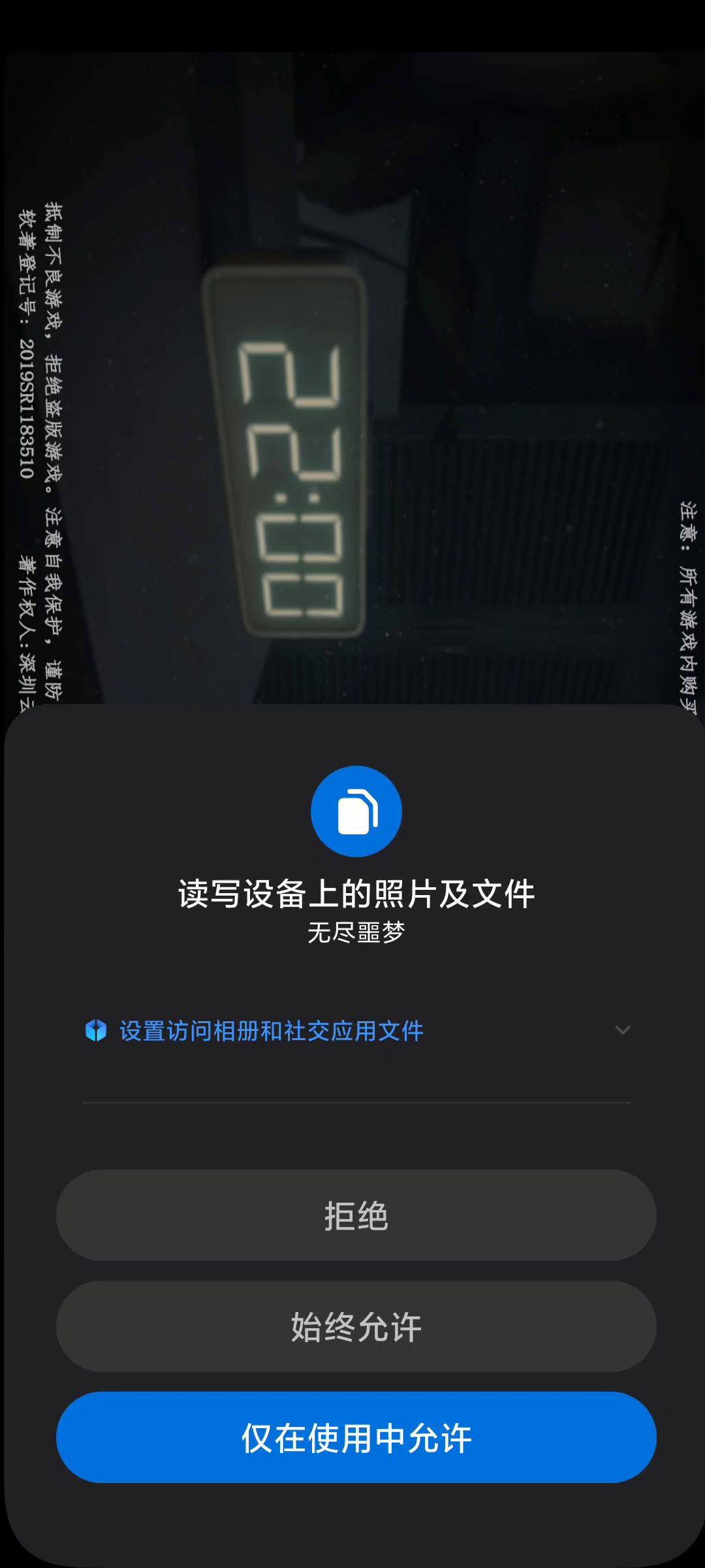 开发大大,你要权限,咋也不给我允许的时间呢,,,这个弹出来后就关不掉了😤