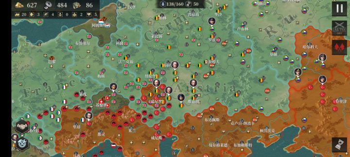 开局拉德国,英国,意大利,奥斯曼各一次。刷保加利亚败亡(保加利亚不死会增大前期兵将海难度)攻略次序:开局榴弹上将和步兵往右上角冲,先占汉堡~再占柏林,莱比锡,期间将领得用上十几个血包~联合俄国占领德国后方获得经济来源~再往南推奥匈~最后攻略非洲前期还是挺艰苦焦灼的,好在奖励的勋章不错