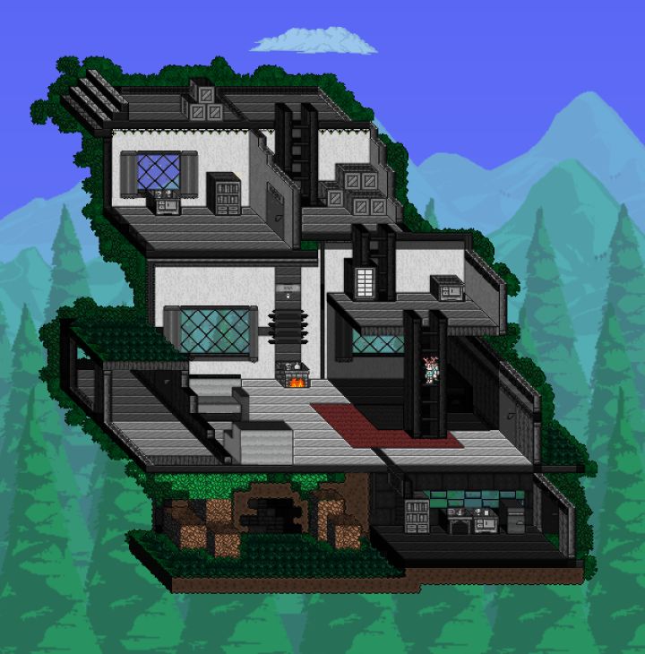 大家好,这里是清风啊真的很高兴泰拉国服现在能有如此高的热度,虽然目前还存在一些等待优化的方面,但是我还是衷心祝愿能越做越好我玩泰拉断断续续也有五六年了,从最初也是玩盗版只会造火柴盒的萌新,到了解更深,在圈子里混更久,摸索着开始做建筑,到现在稍微有些自己的东西在内,真的是感慨万千(下图建筑均在b站同名账号发布过视频)其中以黑白灰色调为主的就是我相当喜欢的斜二测立体做法建筑了,通过刷漆,虚化,
