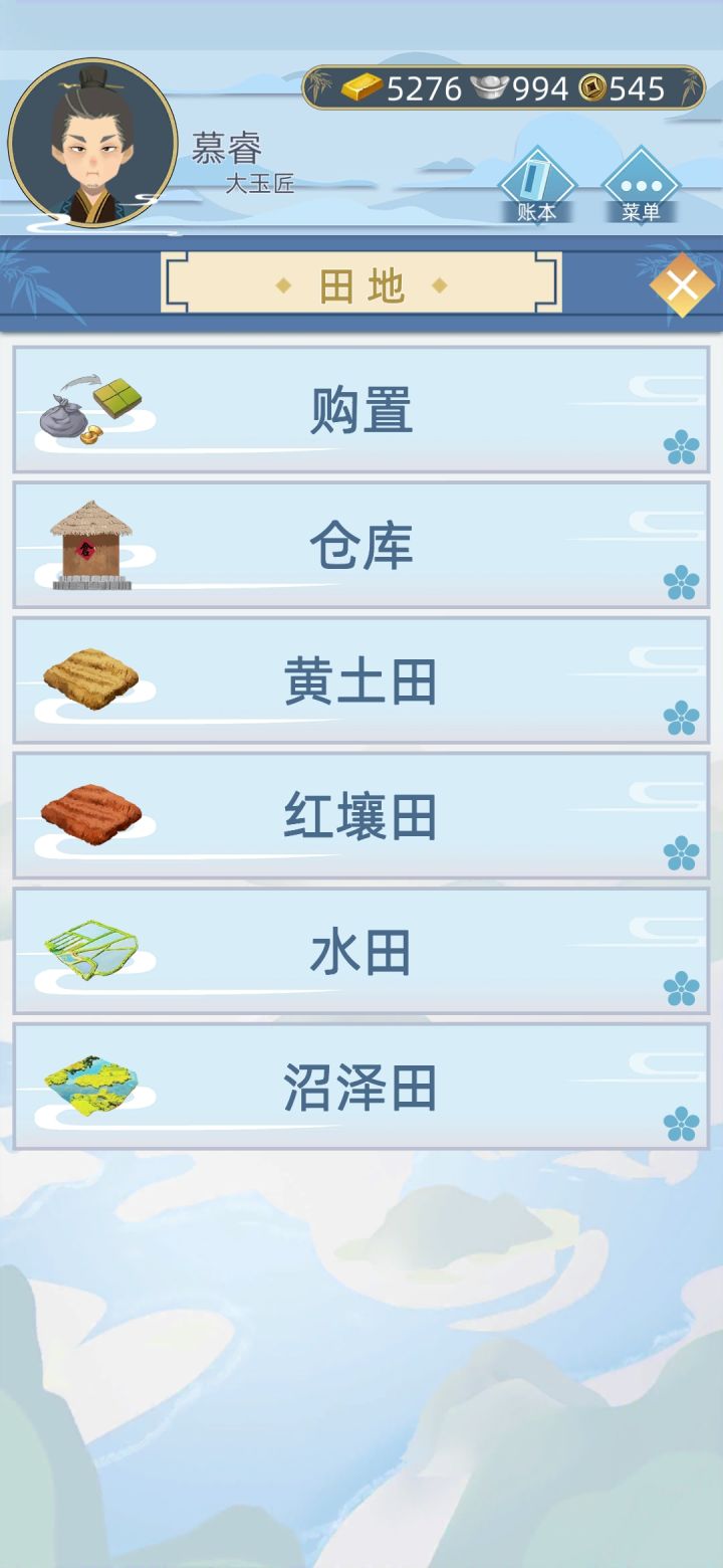 疯狂种田就对了,可以置办家产之前不用管什么属性,找父母要钱,抓促织卖促织就对了,先把经济搞上去,非要加属性的话每年就大堂找人聊天,寺庙参拜。后期买黄土田种西瓜,不管来年涨价降价都种西瓜,施肥还是有必要的,因为我懒得看那么多广告,就只买黄土田不然还得一个个施肥,太麻烦。然后属性部分,心情体魄可以医馆三连,但是有时候也会减心情,没太搞明白,客栈独酌客栈住宿也可以加心情;体魄就是武馆射箭,盯最左边