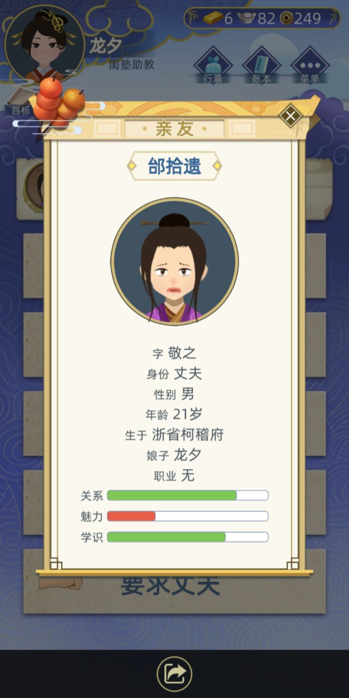 更新了一下可玩度挺高的,但是这是个渣男游戏?好不容易刷上来的好感结果人家只想跟我做哥哥妹妹?所以只能孤独终老了?我原以为是年龄问题,但是最让我气的是一个牛批大佬,答应了要娶老子,结果下一年神他妈娶了别人?不气馁的我又去刷了另外一个,就在快刷满的时候这鬼玩意也结婚了🙄。真是气死爷了,还不能请媒人也不能收养孩子,咋的女人就该孤独终老后继无人???