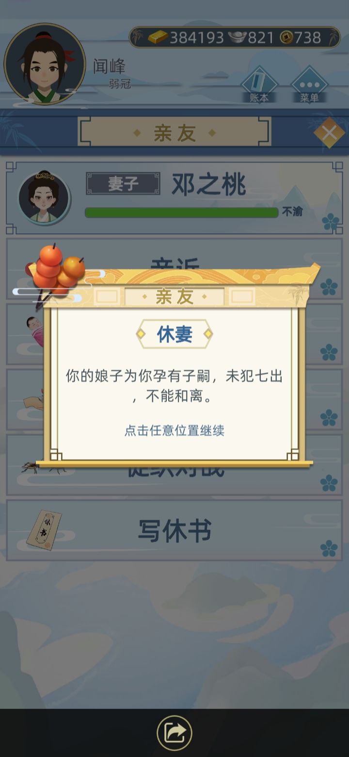 那个,我,现在,慌得一批上一代为了攒地,把钱给了儿子,遗产给了妻子,然后跳了河再然后我正常的玩着刷着属性,然后正常的点了下一年然后我娘……变我媳妇了!!!还不能休!!!我,咋整……