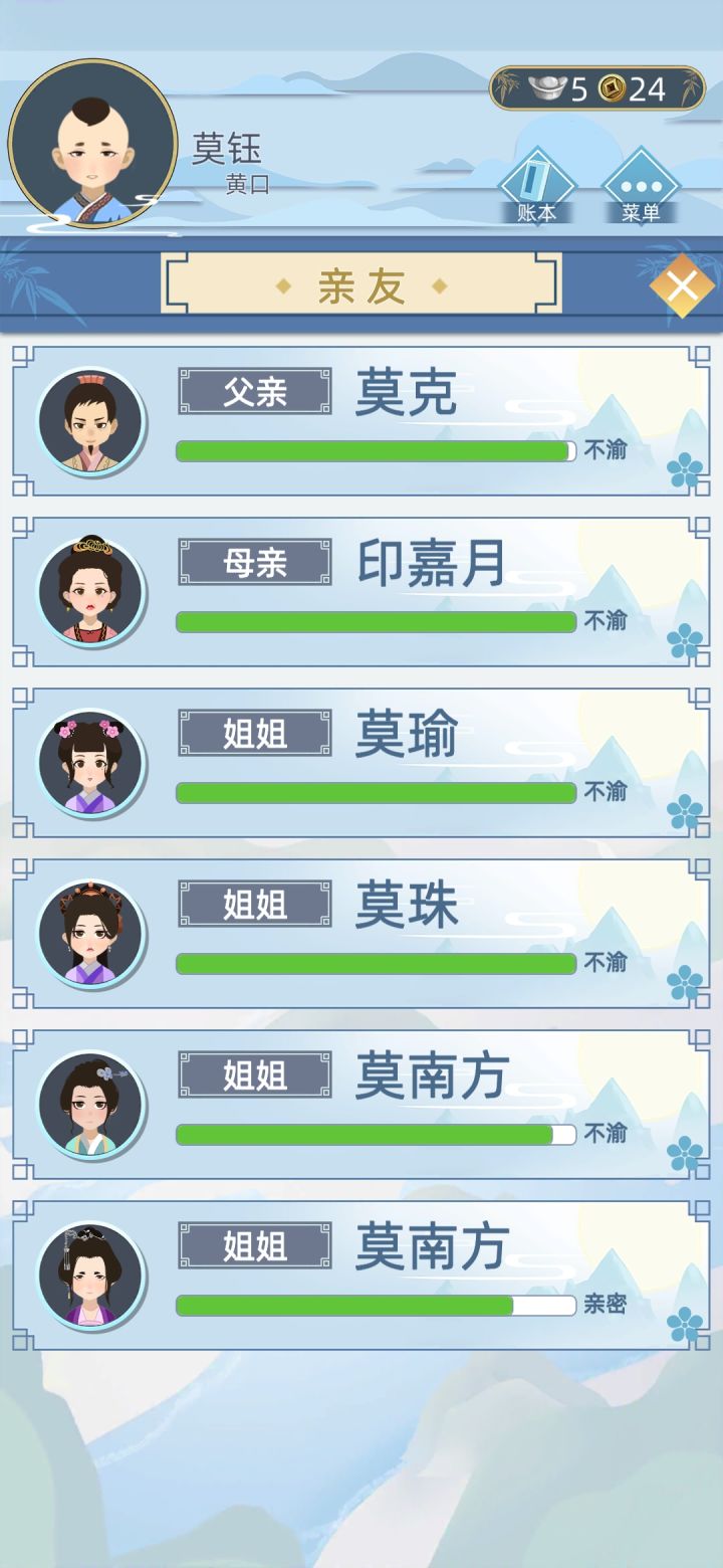为啥都是男角色没女的为啥没武将,侠客,等职业可以搞个驸马公主的皇室路线生下来不可以是王爷太子吗抓曲曲都比收入高不和理吧可以搞个从军的路线可以搞个太监的路线课以搞个父母双亡乞丐的路线可以搞个郎中的路线可以搞个捕头的路线可以搞个苦工奴隶的路线可以搞个土匪儿子的路线可以搞个和尚收养孤儿的路线可以搞个异族的路线可以加战争灾荒的剧情可以搞商人路线镖师路线等等可开发的潜力很大欧