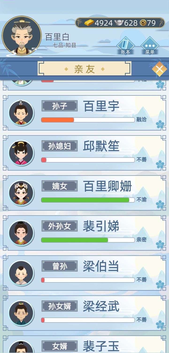 总的来说还是挺好的!一开始抓蟋蟀发家,后面当官,买水田种莲藕,以致后面家财万贯!越是后面感觉越是单调了!而且人际关系有点繁杂!我说说几个点吧!1,人际关系,建议当角色满18或者20就分家,这样好一点!以至于后期关系没那么多,看起来繁杂!可以拜访。2,后期玩法严重不足,我是选择做官,后面反正就是非常无聊,无聊到死,收莲藕,判案,点人际关系,送钱,去医馆加属性,完全就是一个死循环!3,蟋蟀系统确实很棒