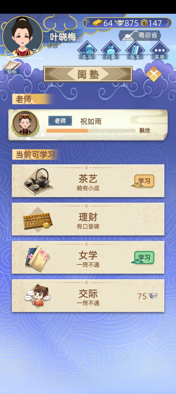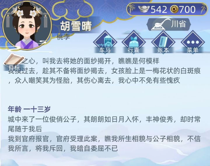 我提几个优化希望老板们能看看。首先我觉得人物上。女性角色的时候丈夫也可以娶知己。只不过不能扶正。然后最好可以出个进宫选妃的路线。一步步升到皇后。男性角色呢可以出个从军路线,可以升到将军。或者是皇帝路线,例如出生在皇室。一步步成为皇上。然后游戏本身呢最好出个银行,不然捐款的时候太多怪心疼的。也可以拓展一个新职业例如掌柜。考不上可以自己当老板。可以招工人。希望老板们能采纳。慢慢优化嘛,我觉得游戏以后会