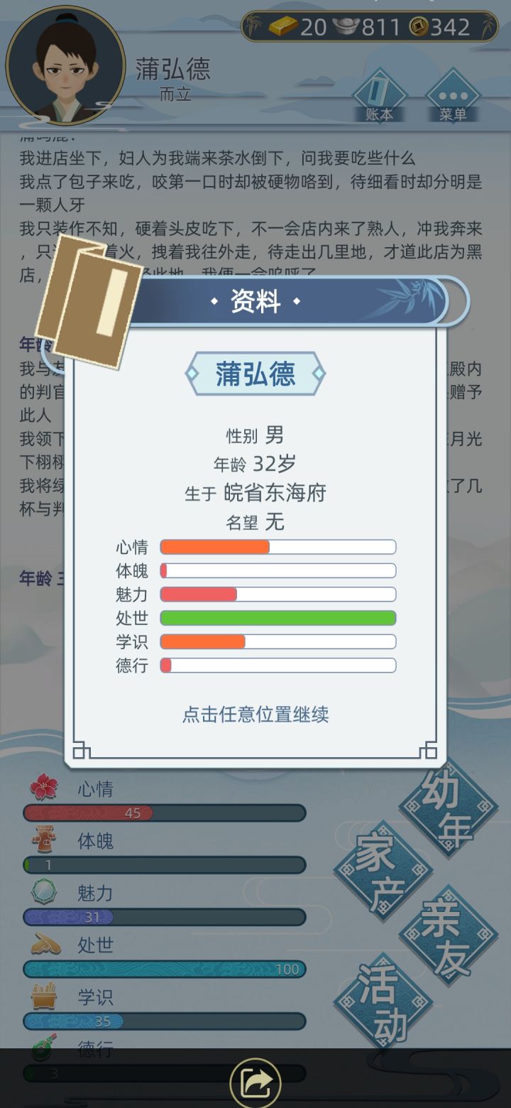 游戏不错,但我希望再多加点职业选择,比如从军,或者行走江湖做个侠客或行者,又或者做个作家什么的