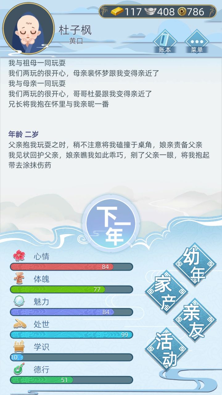 一、我很想儿孙都来请安呀,虽然子子孙孙很多,但是没有儿孙满堂的快乐,后期基本无事可做,代入感不够。二、点“下一年”的时候,我希望我的儿子和孙子[满三周岁]轮流来给我请安。可以选择①进来说话②今天乏了三、儿子和孙子都有不同的性格就更好了。具体的我写在下面。