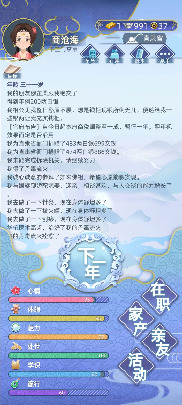 我辛辛苦苦攒的钱为什么莫名其妙的突然间变少,没有任何的花销,这个bug出现了三四次吧,一次比一次严重,第一次和第二次出现在我的钱攒到四十多万黄金的时候两次差不多少了五万多金,都是我点过下一年后突然间变没,我再次说一下,没有任何的花销,就是突然间变没的,游戏界面也没有任何提示我这笔钱去了哪里,第三次出现在我攒到一百一十多万黄金的时候,这次更过分,一下子消失了十多万金条,也是同样的情况,没有任何提示,