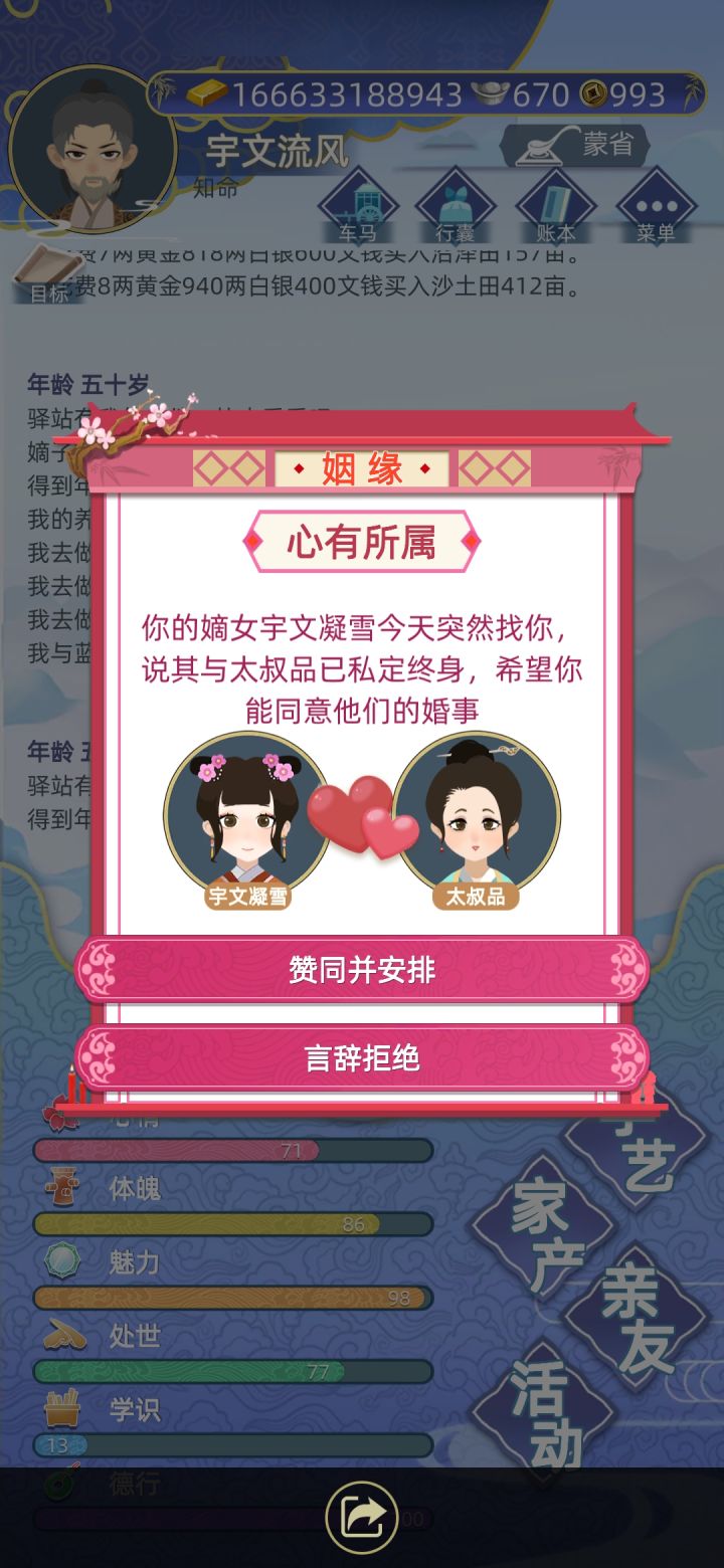 求更新!!!希望以后有皇家人士,例如皇帝皇后宫女太监,还有那种选秀的,然后立下战功当将军王爷,这就圆满了🙈🙈女性职业太少了,玩玩就腻了🙊🙊还有就是可以出个【民国人生】,真的炒鸡期待,好吧我有点异想天开了🌚🌚🌚