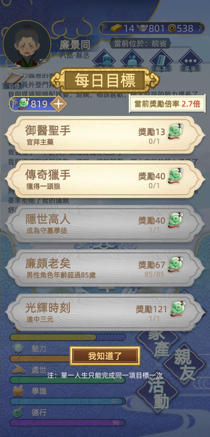大家有遇到不合理的回报吗?官拜主药容易吗?只有13玉佩?!守墓学徒却有40。。。。前者要先找女孩,再找有钱父母,还要考试有适合的药材,以及多次答中很多奇怪的问题,真是过五关斩六将,才13玉佩。考了几次女医,我都以为自己可以出去当中医了😏后者只需要抽中骨刀就可以,不论男女,即使父母都是打杂无业,8年就能当上。幸运的时候,我不用十分钟就完成了。女医应该是最难的职业,比做状元更难,同意的请讚一
