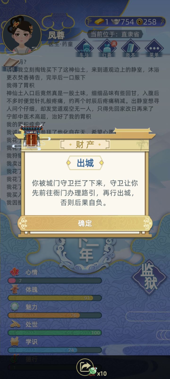 路引我已经办了三遍了,银子也扣了,但是老提示我没有路引,活动记录里也不显示我购买了路引,卡在这儿了啊淦,出不去了,回不了老家啥也干不了啊,还少了150两银子