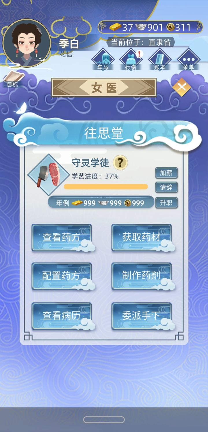 今天刚下的,女医职业到九品出省又回来后就卡住了,没病人不能互动手下只能配药方,关掉重启后变成了下图中的样子